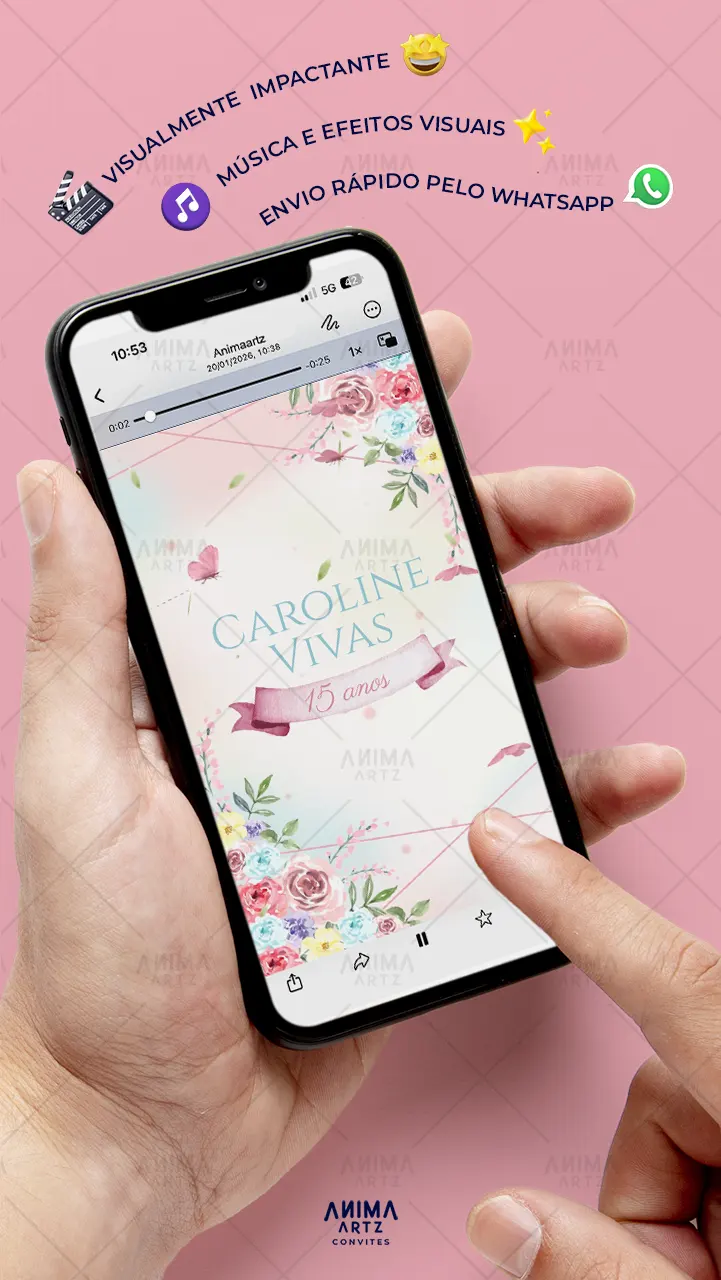 • Personalização com [nome(s) do(s) homenageado(s)], [data], [local] e [detalhes do evento] • Efeitos visuais e sonoros profissionais • Envio digital (link ou WhatsApp)