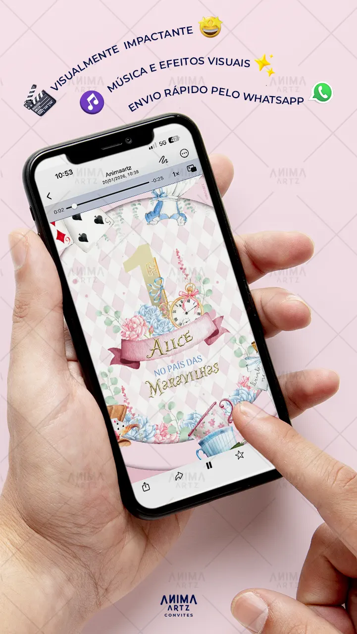• Personalização com [nome(s) do(s) homenageado(s)], [data], [local] e [detalhes do evento] • Efeitos visuais e sonoros profissionais • Envio digital (link ou WhatsApp)