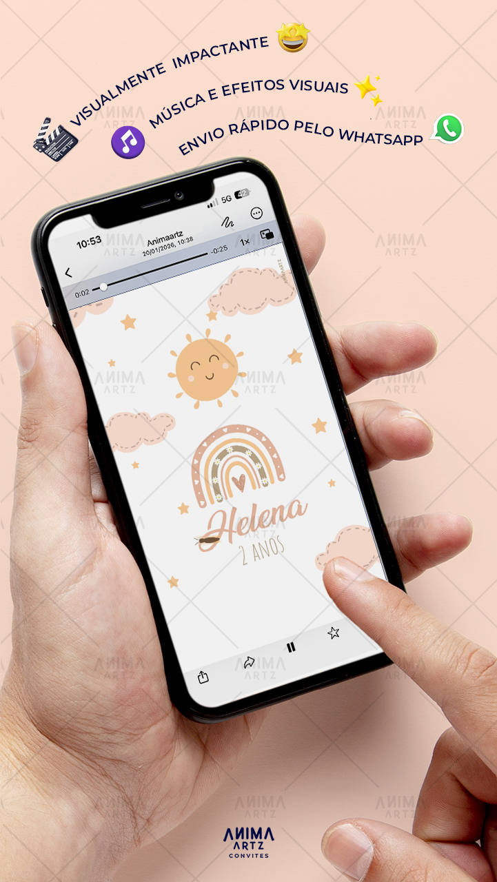 • Personalização com [nome(s) do(s) homenageado(s)], [data], [local] e [detalhes do evento] • Efeitos visuais e sonoros profissionais • Envio digital (link ou WhatsApp)