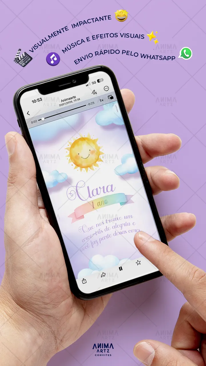 • Personalização com [nome(s) do(s) homenageado(s)], [data], [local] e [detalhes do evento] • Efeitos visuais e sonoros profissionais • Envio digital (link ou WhatsApp)