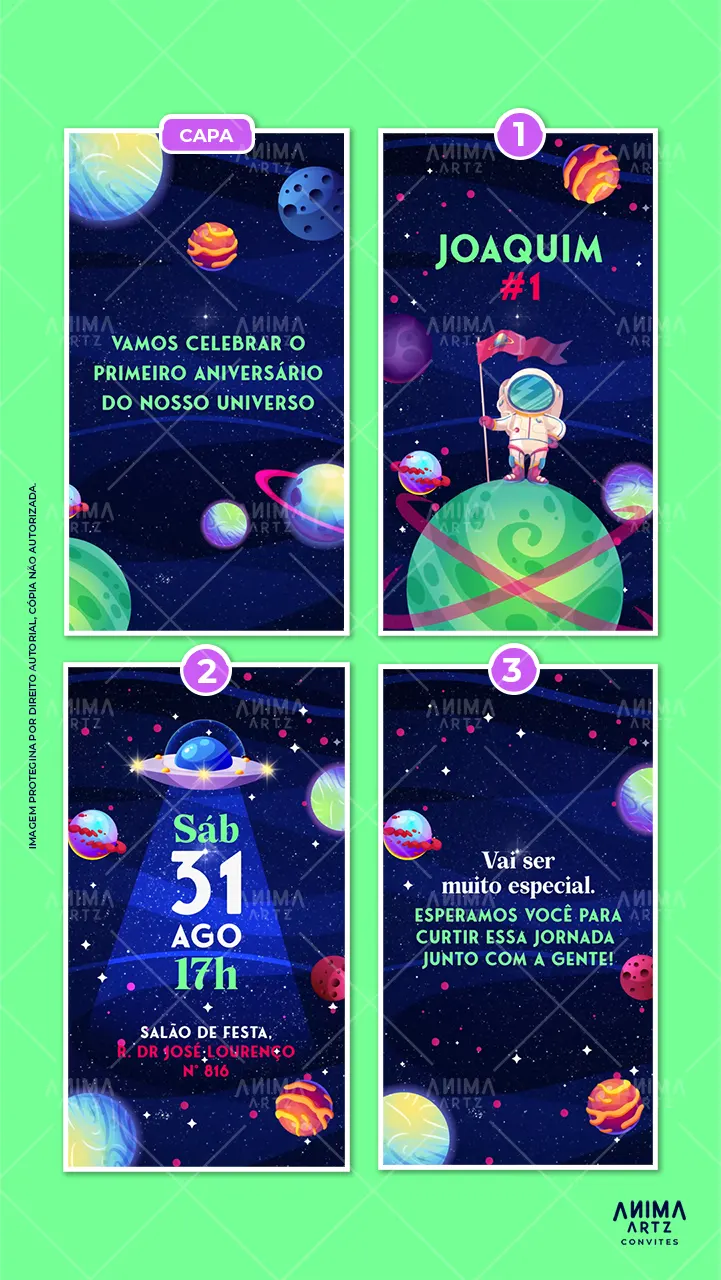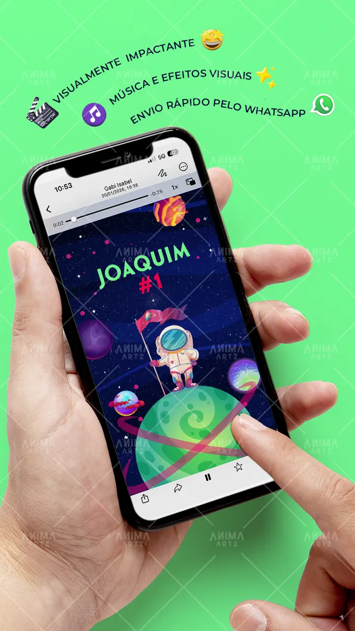 • Personalização com [nome(s) do(s) homenageado(s)], [data], [local] e [detalhes do evento] • Efeitos visuais e sonoros profissionais • Envio digital (link ou WhatsApp)