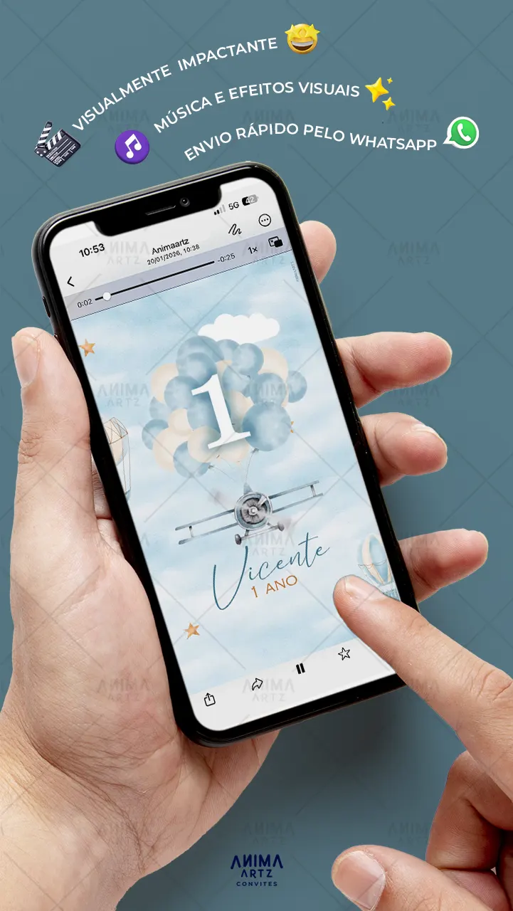 • Personalização com [nome(s) do(s) homenageado(s)], [data], [local] e [detalhes do evento] • Efeitos visuais e sonoros profissionais • Envio digital (link ou WhatsApp)