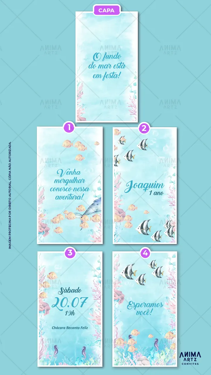 👉 Garanta agora seu convite animado Fundo do Mar e encante todos os convidados com esse tema apaixonante!