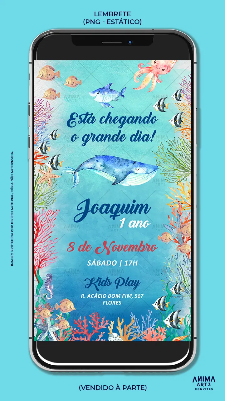 💙 Transforme o aniversário em uma experiência inesquecível com um convite animado Fundo do Mar totalmente personalizado!