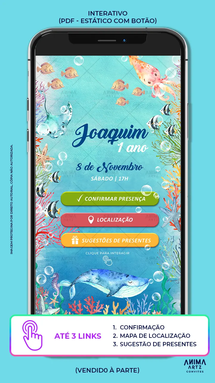 👉 Garanta agora seu convite animado Fundo do Mar e encante todos os convidados com esse tema apaixonante!