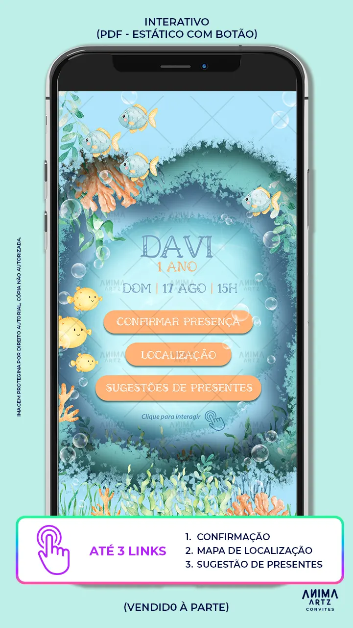 - Personalização com nome, idade, data, horário e local